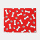 Hondenliefhebbers zullen dol zijn op deze schattige deurmat met botten van striphonden en pootafdrukken op een felrode achtergrond.