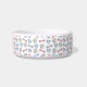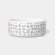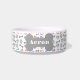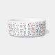 Een leuke, coole design gepersonaliseerde hondenkom met hondenpoten, -botten en -harten in blauw, roze en grijs. Ontworpen door Thisnotme©