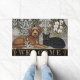 Welkom Doormat met bruin Dog & Black Cat kunstwerk omgeven door een prachtige distel, witte orchideeën, pampagras en exotische winterwitjes in het goud van Art Nuovo in de stijl van William Morris. Prachtig cadeau voor hond/kat eigenaren. Eenvoudig welkomsttekst aanpassen. Voor kleinere (formaat) versie aanpassing, zie in mijn winkel.