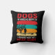 Het kleurrijke hondenliefhebber is voorzien van een rode, witte, blauwe, gele en roomvormende kussen op een achtergrond die je kunt aanpassen aan de kleur die je maar wilt, is voorzien van een silhouetboom en een persoon met een hond en er staat Dogs Happy Humans Make My Head Hurt!