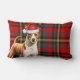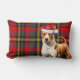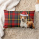 Schakeringen van seizoensgebonden rood en groen in een vakantieplaid met een feestelijke Basenji uitgedost in een Santa-hoed voor het seizoen, is een zekere winnaar voor de inrichting van het vakantiehuis van de huisdierenliefhebber.