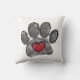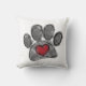 Hondenpootafdruk en hart waterverf in rood, zwart en grijs. Aangepaste gooi kussens voor huizen en bedrijven. Cadeau idee voor hondenliefhebbers.