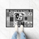 Een echte statement voor uw entree! Deze bento grid design deurmat combineert de moderne esthetiek van een modulair rooster met de levendige pop art stijl. In het midden staat een waakzame hond tegen een gestippelde achtergrond - een humoristische en dynamische afbeelding. Het ontwerp wordt aangevuld met geestige gezegden zoals 'Stap in, als je durft' of 'Hoop op het beste', die je huis op een charmante en unieke manier presenteren. Met een personaliseerbare familienaam en de optie om de tekst aan te passen, past deze mat perfect bij uw stijl. Het zwart-witte kleurenpalet biedt een tijdloze en moderne uitstraling, terwijl decoratieve accenten zoals parallelle lijnen, gestippelde cirkels, rasterstructuren het ontwerp voltooien. Perfect voor gezinnen, koppels of iedereen die originaliteit aan hun entree wil toevoegen.