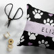 Hondenpoten, witte poten, Lila harten, Jouw naam Accent Kussen