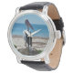 Pelican, Watch, met dit hoogstaande horloge is een erg hongerige Pelican die op een strandsteen staat op een prachtig, schoon, blauw zee strand, https://www.zazzle.com.au/naturalcauses*