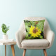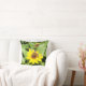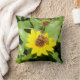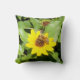 Foto van een honingbij op een gele zonnebloem, aan beide zijden van een kussen gedrukt.