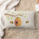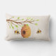 Gooi kussen met boomtak met honingbijen en bijenkop.