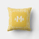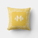 Honinggeel Reverse Greek Key Border Monogram Kussen