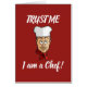Chef's hoofd met pet, rode neckerchief en aangepaste tekst.