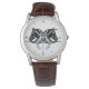 hoofden van twee zwarte paarden en hoefijzer horloge