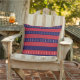 hoofdletter van de jouw naam op gestreepte blauwe buitenkussen