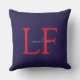 Voorzijde: een prachtig en modern patroonontwerp gemaakt met de initiaal letter van uw eigen naam over een jaloers patroon van rode en blauwe strepen. Achterzijde: jouw naam monogrammed. Een mooi en uniek decor-idee