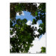 Foto met groene bladeren en een grotendeels bewolkte, maar blauwe lucht ontvouwt zich. Bedoeld als aanmoediging en ondersteuning. Print binnen: "Hoop. Wacht even, wees sterk. En op een dag zal het licht doorschijnen!" Standaardtekst kan worden gewijzigd of verwijderd. Originele foto van KreaturShop.