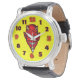 Cool rood-duivelse polshorloge. Koel-, retro- en heupdonkere prins van het onderwereldtijdstuk op een felgele achtergrond.