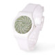Het patroon van de hak in de ronde. Gedifferentieerde groenen als achtergrond en wit als spiraalarmen die uitstralen vanuit het midden. De aantallen zijn wit met dalingsschaduw en zitten ongeveer op de witte spiraalarmen. ***Deel van de gecoördineerde set bkmAN1c