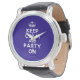 Gebaseerd op de originele Keep Calm en ... poster deze crème en blauw Keep Calm en Party On Watch beschikt over een op maat ontworpen lettertype dat nauw aansluit bij het origineel.