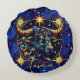 Royal blauw en gouden Kussens met een stiersymbool voor het horoscoopteken Stier met sterachtergrond. Een opvallende luchtkunstillustratie.