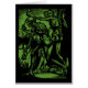 Johannes Josephus Aarts, een Nederlandse meester bekend om zijn dramatische scènes, legde een beklijvend afbeelding vast getiteld "De Mijnwerkers." Twee uitgemergelde figuren, met hun huid strak over hun botten, zwaaiden weg in een donkere mijn die slechts door één flikkerende kaars werd verlicht. Deze Halloween echter, een lokale kunstenaar gebruikte Photoshop om nieuw leven, of beter gezegd, nieuwe dood, in de scène te blazen. — Het ooit bekende kunstwerk veranderde in een huiveringwekkend Halloweenspektakel. In één versie, de "Emerald Dread", baadde de mijn in een ziekelijke groene gloed. Het licht van de kaars wierp lange, groteske schaduwen die als hongerige slangen op de vochtige mijnmuren schreven. De mijnwerkers zelf waren niet langer alleen maar skeletachtig, ze pulseerden met een onnatuurlijke groene luminescentie, waarbij hun lege oogkassen nu branden met een smaragdgroen vuur bevestigd op iets dat niet gezien is in de diepten van de mijn. — De andere versie, de "helse gloed", kreeg een vurige, helse toon. De krappe mijn werd een onderdrukkende oranje inferno, aangestoken door de vlammen van de hel zelf. De mijnwerkers, die niet langer skeletmatig waren, bleken volledig te bestaan uit smeulende sintels. Hun vormen flikkerden en verschoven, hun gezichten omgevormd in stille schreeuwen. De lucht zelf leek te kraken met een ongeziene energie, en de duisternis voorbij het kaarslicht leek te schrijven met ongeziene verschrikkingen. — Beide versies van het kunstwerk riepen een huiveringwekkende Halloween-legende op, gefluisterd door zowel mijnwerkers als kunstliefhebbers. Het verhaal beweerde dat Aarts op een vervloekte mijn stuitte, een plek waar de zielen van de mijnwerkers gevangen zaten, voorgoed gedoemd om te zwoegen in de onderdrukkende duisternis. Er wordt gezegd dat de enkele kaars het enige was dat de rusteloze geesten op afstand hield. Mocht de kaars ooit uitdoven, waarschuwde de legende, dan zouden de wraakzuchtige mijnwerkers de wereld ontketenen, hun skeletvormen doordrenkt met een onnatuurlijke kracht. — Deze gekleurde versies van Aarts' "The Miners" zijn een lokale Halloween traditie geworden. Ze sieren etalages, flikkeren op schermen in spookhuizen en worden zelfs gedrukt op Halloween-wenskaarten. De huiveringwekkende beelden dienen als een grimmige herinnering aan de gevaren die onder het oppervlak op de loer liggen, een herinnering dat de duisternis geheimen het beste ongestoord bewaart. Halloween nadert, fluistert over de vervloekte mijn en haar gekweld zielen vullen de lucht, een huiveringwekkende herinnering dat sommige legendes best ongeverfd kunnen blijven, of in dit hoesje, opnieuw gekleurd.— Originele etsen door de Nederlandse schilder Johannes Josephus Aarts "1881 - 1934" zijn werken zijn nu in het publieke domein.