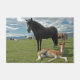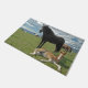 Deze deurmat heeft paarden in een prachtig veld erop.
