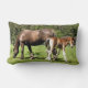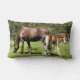 Een bruine merrie en haar schattige koudvee.