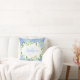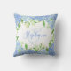 Dit kussen is voorzien van een modern bloemig waterverf ontwerp met blauwe hortensia bloemen en groen bladeren en gebladerte. Personaliseer het met een naam en initiaal