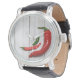 Corner border of red and green hot chili peppers organically grown on a white washed wooden background