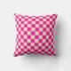 A pink and cream checkerboard pattern covers the entire image, creating a vibrant, energetic feel. The repeated squares are evenly arranged.