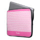 Deze neopreenlaptophoes van 15-17 inch is voorzien van een patroon van hete roze chevrons terwijl ze horizontaal over de stof lopen tegen een witte achtergrond tussen een boven- en onderrand van hete roze. Er is een placeholder voor uw keus van naam, initialen of monogram.