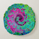 Hot Pink en Blue Groovy Abstract Retro Swirl Rond Kussen