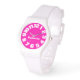 Opvallen in de menigte met dit ultra hete roze polshorloge, gepersonaliseerd met naam of tekst, in helder, fluorescerend neon heet roze. Maak een leuke en frisse girly stijl statement met deze moderne effen kleur hot pink fuchsia en wit horloge.