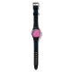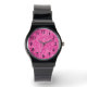 Faux luxe glitter in helder of heet roze met zwarte cijfers op een klokgezicht. Voeg een monogram of gepersonaliseerde tekst toe. Meisje pols horloge voor haar. Faux heet roze glitter.