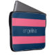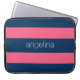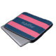Hot-roze en moderne marinerougby-strips met naam laptop sleeve