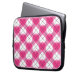 Deze laptophoes heeft een argyle patroon van hete roze en witte harten op een lichtroze achtergrond.