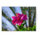 Deze kaart met een hete roze hibiscus is perfect voor vele gelegenheden. Op de achtergrond bevinden zich de voorkanten van een reizigerspalm. Op de achterkant van de kaart staat nog een mooie roze hibiscus.