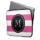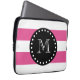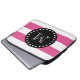 Hot-roze witte strips patroon, zwart monogram laptop sleeve
