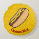 Cartoon illustratie van hotdog. Junk food outline iconen geel patroon achtergrond. Aangepaste tekst aan beide zijden.