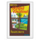 Vintage reisbureau voor het Hotel Reina Cristina in Algeciras, Spanje aan de andere kant van de haven van Gibraltar, afgebeeld in het raam.