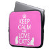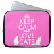 Dit is het klassieke 'Keep Calm and Carry On'-poster, geherformuleerd tot 'Keep Calm and Love Cats'. Het is wit op een gekleurde achtergrond en gaat vergezeld van silhouettes van katten die dicht bij de woorden zitten.