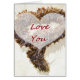 Een zeewier met een duidelijke hartvorm erboven, met gezegden 'Hou van je' in het midden.
