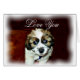 Een schilderij van een baby puppy die op zoek is naar liefde.