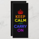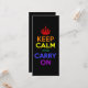 Houd kalm en draai op -stijl ontwerp in een regenboog van kleuren tegen een zwarte achtergrond.