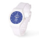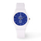 Houd Calm en zeil op nautische pols horloge cadeau idee voor zeilliefhebber. kleuren. Houd kalme typografie sjabloon met wit bootankersilhouet. marineblauwe achtergrondkleur en tekst. Leuk verjaardagscadeau idee voor meisje, tiener, vriendin, zeilvrouw, moeder, vriend, collega, collega, zus, tante, oma etc.