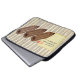 Deze stevige laptophoes is zowel nuttig als erg cool en heeft een origineel ontwerp met: 3 Raw Wood-potloden (elk van een andere soort); een rood plastic afgeknipt vel geel gevoerd papier met 3 aangepaste tekstvelden om te personaliseren; op een verouderde, gekleurde, grijze en gebroken witte verticale streepachtergrond.