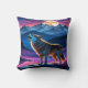 Een majestueuze wolf staat op een rots, huilend bij een gloeiende volle maan. Het bruisende gebergte en het paarse landschap creëer een mystieke schemerige sfeer.