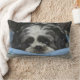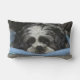 Deze zwarte en witte shih-tzu puppy met grote droeve ogen is onweerstaanbaar schattig.