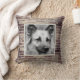 Gooi kussen met foto sjabloon en noodlijdende bakstenen rand / achtergrond. Upload de foto van een favoriet huisdier. Een Duitse herder wordt getoond en kan worden uitgewisseld met een kat, hond of ander huisdier. Mannelijk ontwerp werkt goed als een geschenk voor een man, tiener of opa.