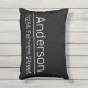Dit zwarte veranda kussen heeft witte tekst die u kunt bewerken naar show jouw naam en straatadres. De naam staat boven een horizontale lijn. De tekst voor je adres staat onderaan.