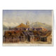 Het schilderen van de waterverf van verschillende samengevoegde huizen in Acapulco, Mexico, met bergen op de achtergrond.