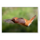 Een helder oranje vrouw Rufous Hummingbird die tijdens de vlucht zweeft.