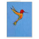 Hummingbird geschilderd in tropische kleuren op een hemelblauwe achtergrond.